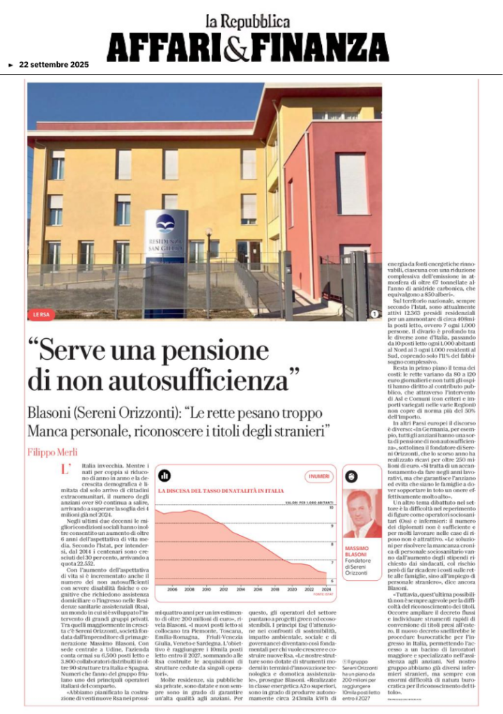 LA REPUBBLICA, AFFARI&FINANZA – “Serve una pensione di non autosufficienza”